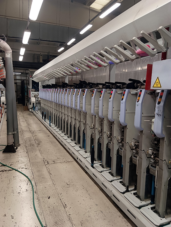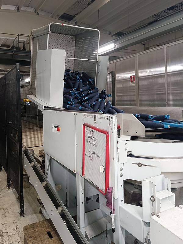 waxing device, 1 automatic doffing trolley, single basket cone magazine per head, blower, Volts 380 - 50 Hz - 62 A