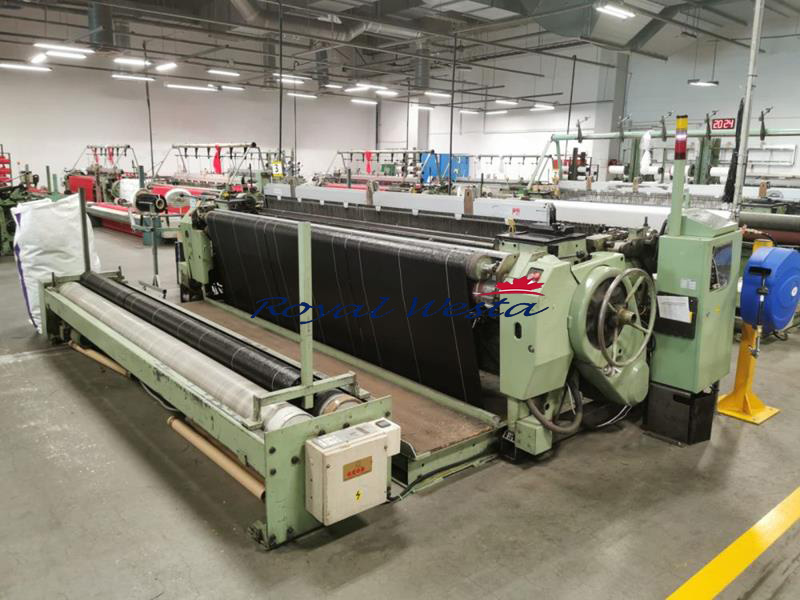 On the P7150 P330 N2 EP D12, 2000, 2001 looms - 4 pieces, Were produced mainly fabrics for gardening of 99 g/m2; Loom efficiency approx. 300 m/1st shift.
