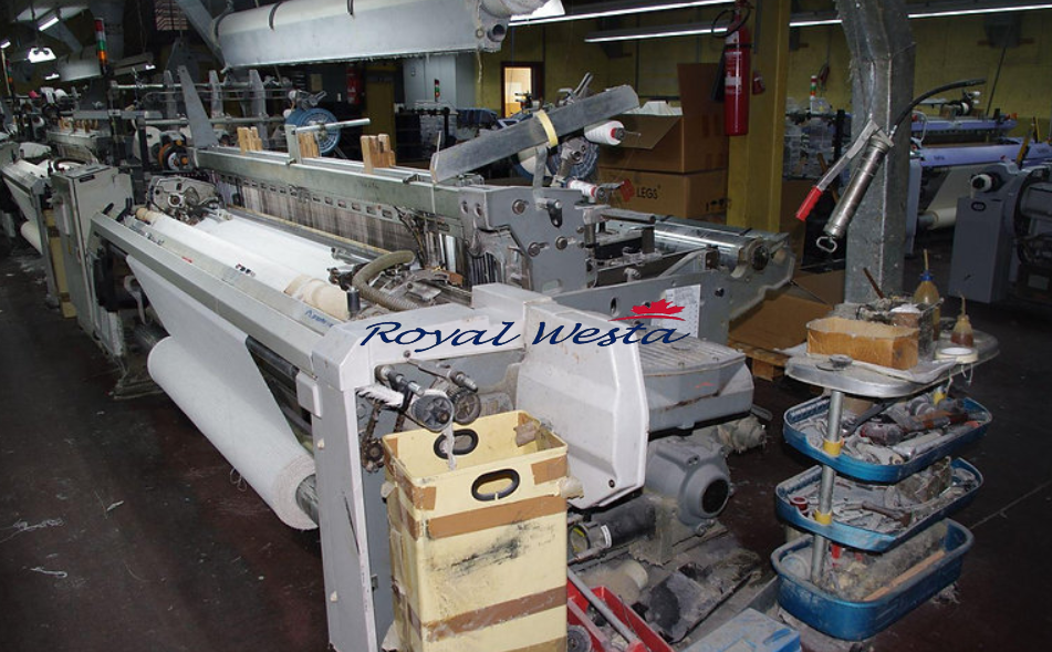 Including 2 weft accumulators, 12 heald frames, 1,5 warp beams, 1,5 cloth rolls.
