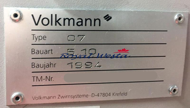 Delivery: conical and cylindrical tubes, length 170mm, 6” traverse, diameter until 350 mm, 2-3 kg, bobbin lift by yarn break, air threading Volcojet, waxing device, spindle speed 2.600-5.500 tpm.