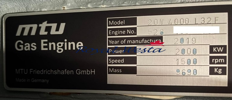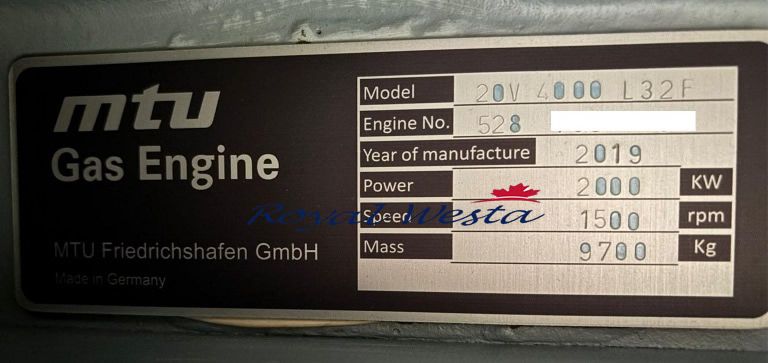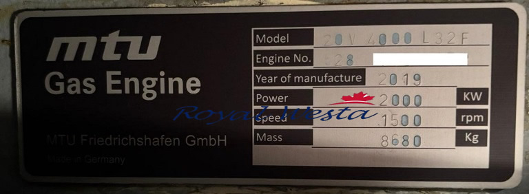 Manufacturer: MTU Germany 2000 KW